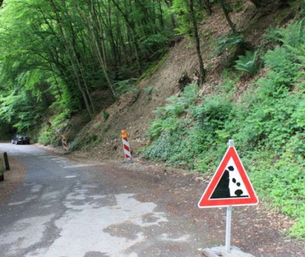 Starker Regen gefährdet den Westen und Süden Deutschlands. Bis zum Abend können 100 l/m2 und mehr fallen. Hänge können destabilisiert werden, wie auf unserem Bild hier: