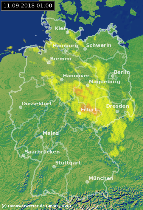 Heute kann es im Tagesverlauf unmittelbar im Küstenbereich von Nord- und Ostsee, sowie über Schleswig-Holstein zu Regenfällen kommen. Die Niederschlagsmengen liegen dabei zwischen 1 und 10 Liter pro Quadratmeter. Im übrigen Land bleibt es trocken und spätsommerlich warm.