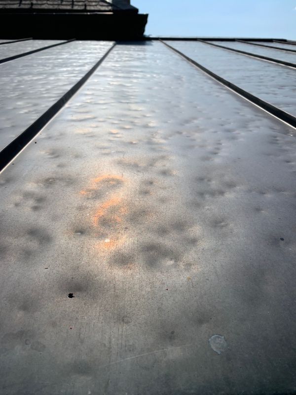 Das Bild zeigen ein von Hagelschlag gezeichnetes Dach.
