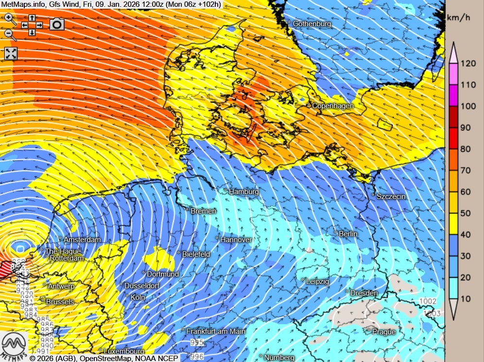 Besonders spannend wird es in dieser Woche zunächst in der zweiten Wochenhälfte: Ab Donnerstag zieht ein Tiefdruckgebiet über Mitteleuropa hinweg. Es bringt nicht nur ergiebige Schneefälle mit sich, sondern vor allem für den Norden auch Sturm.