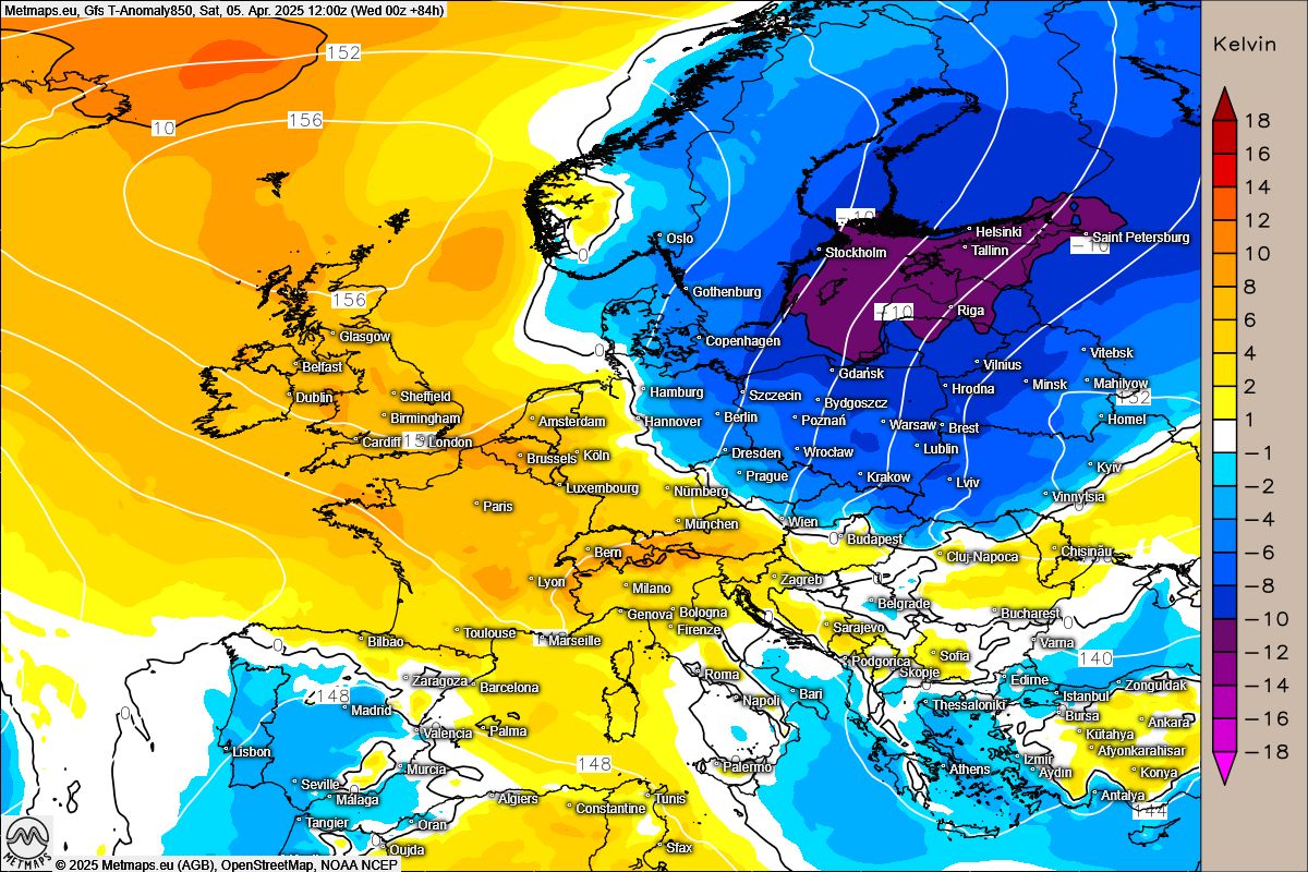 Temperaturanomalie Samstag, 05.04.2025 (GFS)