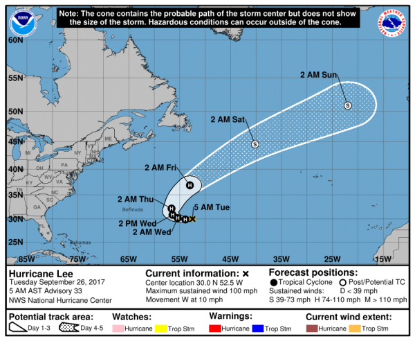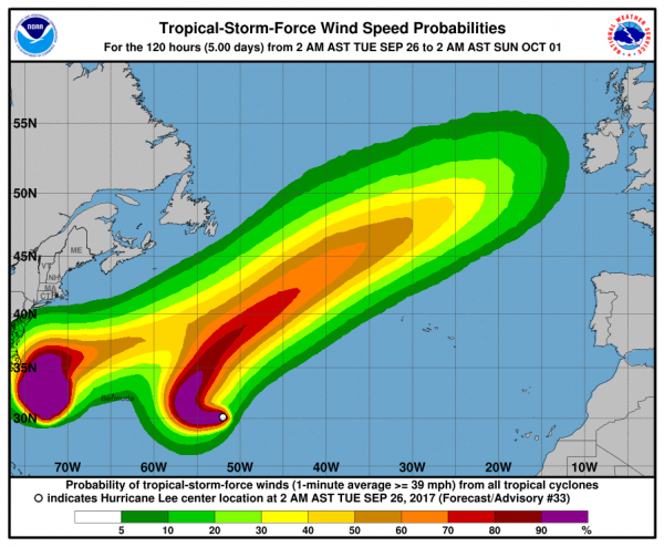 Ex-Hurrikan Lee und Maria werden das europäiche Wetter durcheinander wirbeln. Spätestens zum Tag der deutschen Einheit kommen die Stürme als normale Tiefs mit Regen und Wind in Deutschland an. Die Prognosekarte zeigt den Weg über den Atlantik und das Windfeld. Unsere Deutschlandprognosen finden Sie hier.