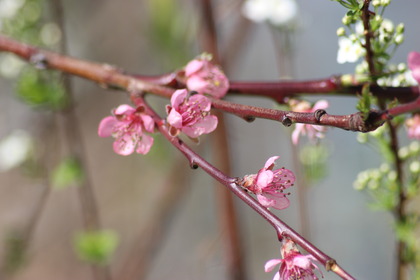 Rein vorsichtshalber sollten frostempfindliche Pflanzen in den kommenden Nächten geschützt werden. Auch im Flachland droht bis Donnerstag leichter Frost. Besonders die Blüten, wie hier bei unserem Pfirsichbaum, sind empfindlich.