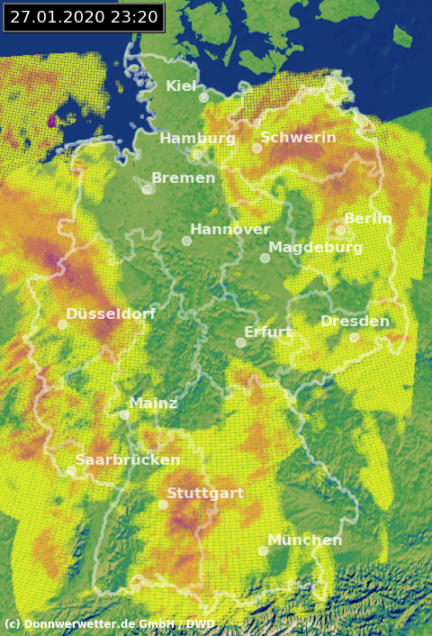 Radarbild von Montag, 27.01.2020 um 23.20 Uhr