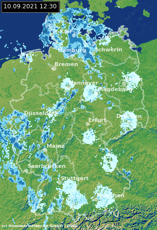 Besonders in NRW, Niedersachsen, Hessen, eventuell auch in Rheinland-Pfalz und dem Saarland, geht es heute mit Blitzlichtgewitter und Donnerkonzert ins Wochenende. Die Luft ist klebrig und schwülwarm.