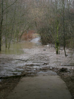 Die Sieg hat bei Bonn die umliegenden Felder überflutet. Fotos vom Montag, 14. Februar 2005:
