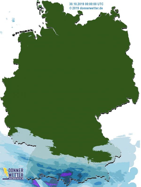 Heute fällt im Alpenvorland zunächst noch zeitweise Regen, auf den Bergen kann es schneien. Die Niederschlagsmengen liegen dabei meist zwischen 1 und 10 Liter pro Quadratmeter. Bis zum Mittag ziehen sich die Niederschläge immer weiter an die Alpen zurück und werden seltener. Im übrigen Land herrscht dank Hochdruckeinfluss ruhiges und oft freundliches Herbstwetter. Nachts droht gebietsweise Frost, tagsüber liegen die Werte meist zwischen 7 und 12 Grad.