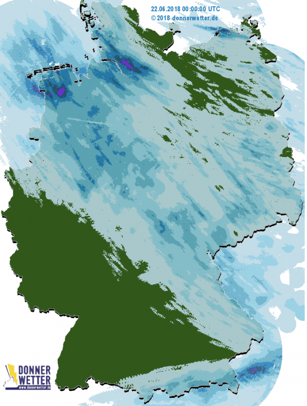 Danach wird es wieder zunehmend freundlicher und sommerlicher. Lediglich über Sachsen und Südostbayern können sich noch einzelne Regengüsse bilden.