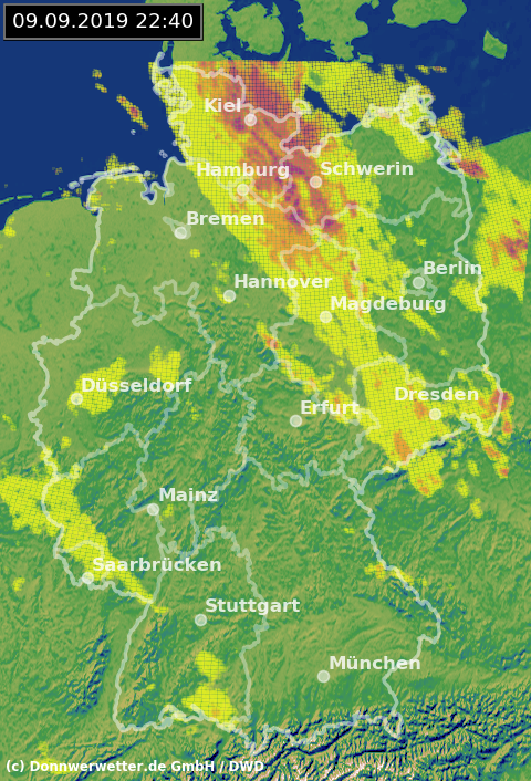 Radarbild von Montag, 10.09.2019 um 22.40 Uhr
