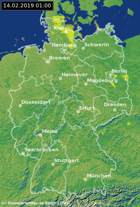 Radarbild von Donnerstag, 14.02.2019 um 01.00 Uhr
