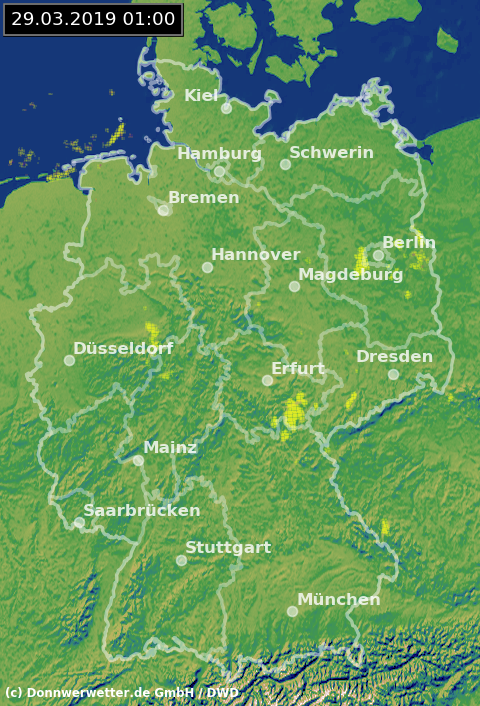 Radarbild von Freitag, 29.03.2019 um 01.00 Uhr