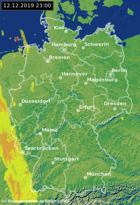 Radarbild von Donnerstag, 12.12.2019 um 23.00 Uhr