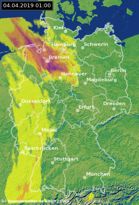 Radarbild von Donnerstag, 04.04.2019 um 01.00 Uhr