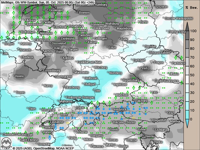 Während sie im Westen und Norden bereits durchgezogen ist, erreicht sie am Abend die Alpen – begleitet von einem deutlichen Temperatursturz und Sturmböen. Ab einer Höhe von rund 1500 Metern ist hier zudem mit teils kräftigem Schneefall zu rechnen.