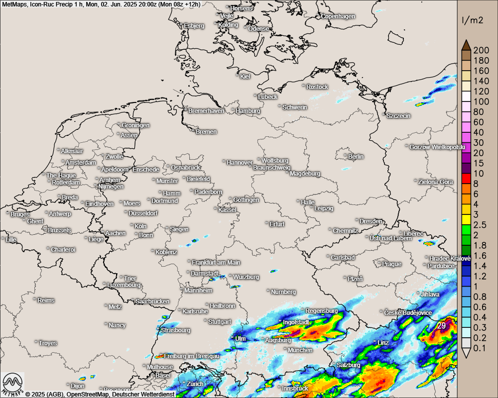 Deutlich explosiver ist die Lage dagegen in Baden-Württemberg, Bayern sowie in der Schweiz und Österreich: Hier muss in den nächsten Stunden mit teils heftigen Schauern und Gewitter gerechnet werden.