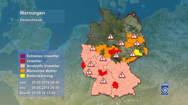 Aktuell haben wir wieder Unwetterwarnungen. An diesem Sonntag ist von NRW bis nach Bayern mit Gewittern zu rechnen. Mehr dazu im Deutschlandwetter.