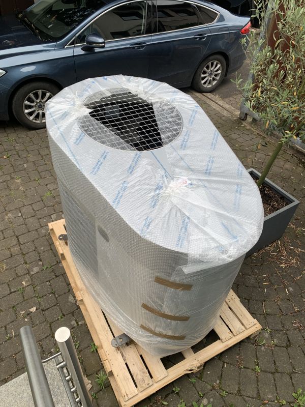 In unserem ersten Teil stand die Wärmepumpe noch da, gut verpackt und auf die Installateure wartend.