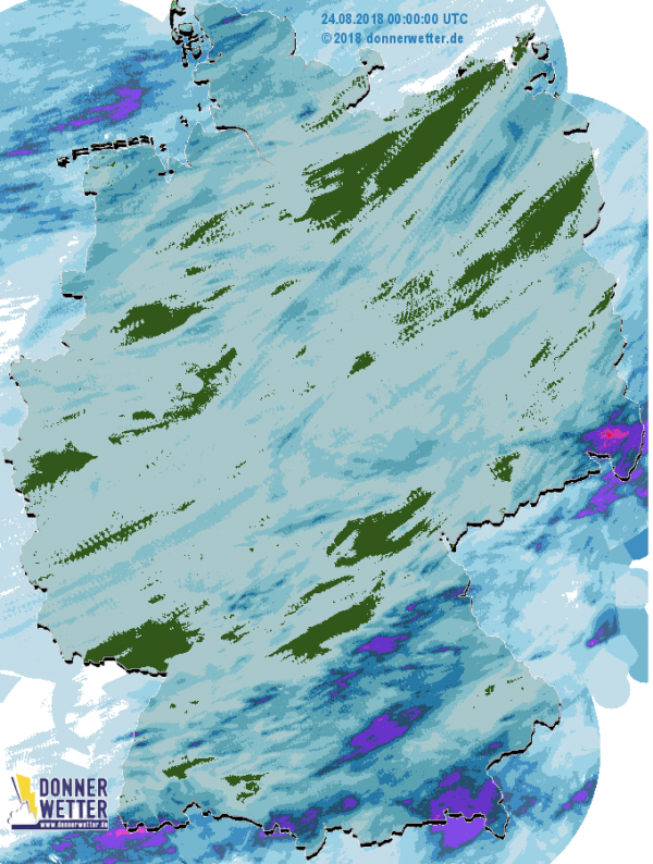 Gestern gab es, wie das 24-Stunden.Radar-Bild zeigt, schon verbreitet leichte Schauer. Die Regenmengen blieben aber eher gering. Heute folgen nochmals Schauer in kalter Luft.