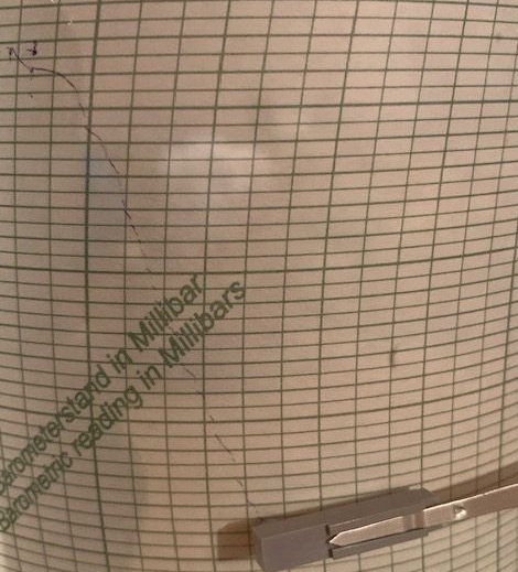 Über 20 hPa ist der Luftdruck mit Sturmtief "Detlef" binnen 24 Stunden abgestürzt - auf dem ersten Foto ist der Absturz der Luftdruckkurve unseres Mikrobarografen am Standort Bonn in den letzten 24 Stunden zu erkennen.