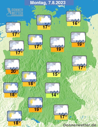 In Kombination ein Witterungszustand, bei dem den man wohl nur mit einem 360°-Schirm die Frisur retten könnte. Immerhin: Im Tagesverlauf lassen die Regenfälle von Nordwesten Stück für Stück nach.