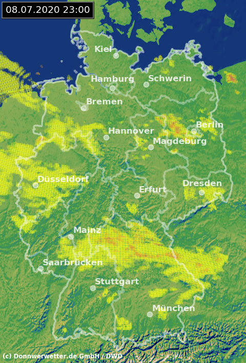 Radarbild von Mittwoch, 08.07.2020 um 23.00 Uhr