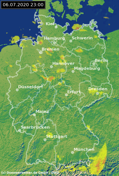 Radarbild von Montag, 06.07.2020 um 23.00 Uhr