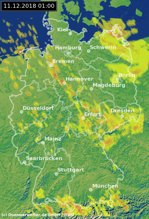 Radarbild von Dienstag, 11.12.2018 um 01.00 Uhr