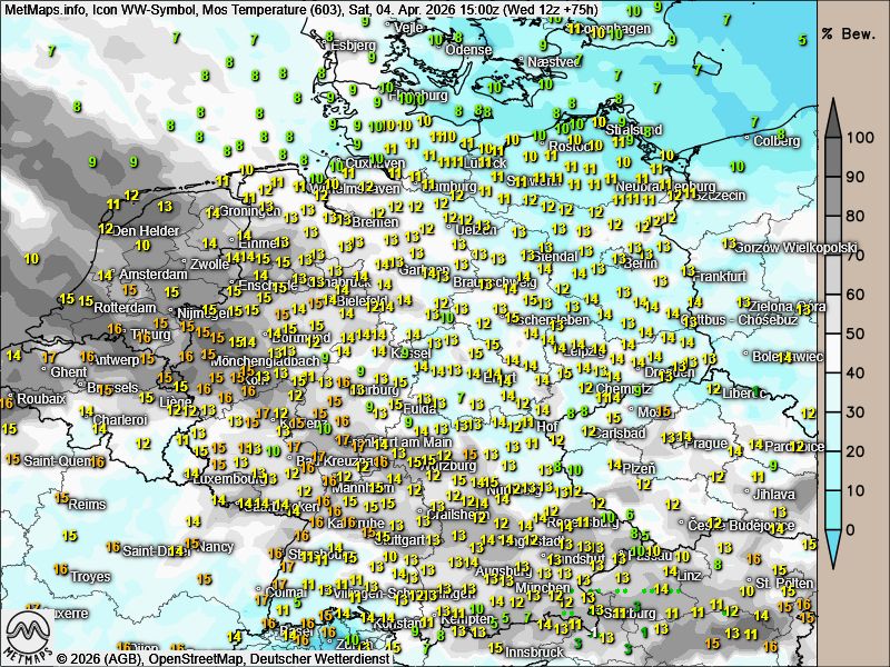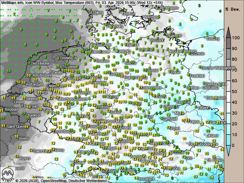 Die Wetter- und Temperaturkarten für Karfreitag, Karsamstag und Ostersonntag (15:00 Uhr) nach ICON: