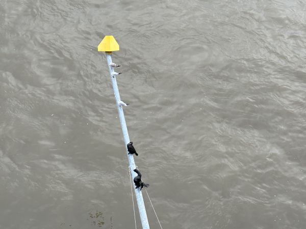 Die folgenden Aufnahmen sind Montagfrüh in Bonn entstanden. Auf dem ersten Foto gut zu erkennen: Der höhere Pegel des Wochenendes, welcher sich noch auf der Kaimauer abzeichnet.
