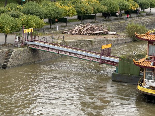 Nach dem Durchzug einer kleinen Hochwasserwelle am Wochenende zieht sich der Rheinpegel nun langsam wieder zurück.