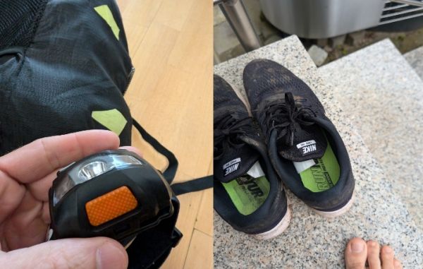 Dementsprechend gilt es, mich in Gepäckfragen auf alle Wettereventualitäten einzustellen und gleichzeitig mit möglichst wenigen Kilos den Marsch anzutreten. Vorbereitung ist bei einem 24-Stunden Marsch alles. Mit auf die Reise kommen in jedem Fall die ausgelatschtesten Schuhe, die der Schuhschrank ausspuckt. Ein bequemer Gang, zumindest über die ersten 50 Kilometer, sollten so schon mal kein Problem darstellen; danach muss die "Bereifung" wohl gewechselt werden. Und ebenso wichtig: Die Stirnlampe mit Rotlicht, um das Wild in der Nacht nicht zu verschrecken.