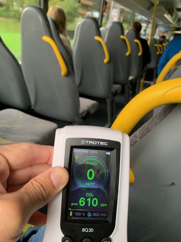 Und dies zu testen, haben wir in den letzten Tagen und Wochen unsere Messaktivität mit dem mobilen CO2-Messgerät auf den öffentlichen Personennahverkehr eingegrenzt.