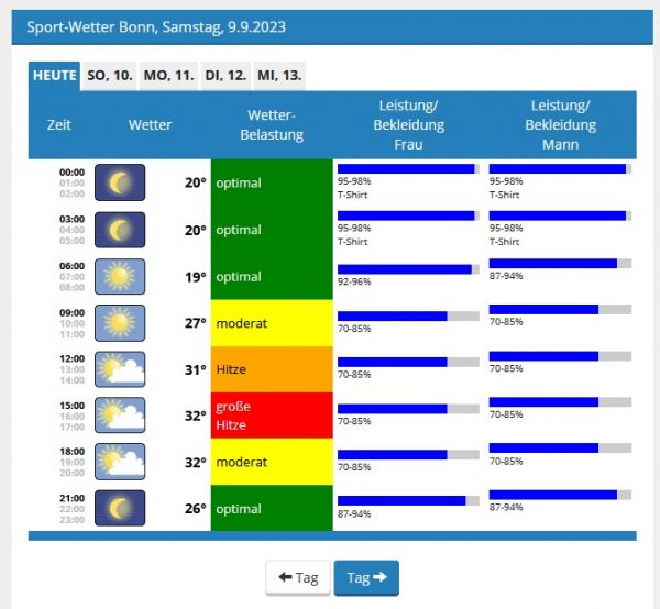 Auch das neue donnerwetter.de-Sportwetter wies für den Sport an den letzten Tagen zum Teil große Belastungen durch Hitze aus.