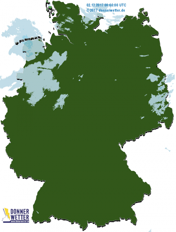 Das Radarbild zeigt aktuell im Nordwesten leichte bis mäßige Signale. Hier fällt bereits schon Schnee, im Küstenbereich bei Temperaturen leicht über dem Gefrierpunkt auch Regen oder Sprühregen. Sonst ist der Himmel über Deutschland überwiegend wolkenverhangen, aber auch gebietsweise aufgeklart. Vereinzelt haben sich Nebelfelder gebildet.