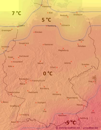 Unter geringerer Bewölkung geht es in der Silvesternacht weiter südlich merklich frischer zu: In den mittleren Landesteilen sind immerhin noch Temperaturen um den Gefrierpunkt zu erwarten, in Bayern und Baden-Württemberg sinkt das Quecksilber in der Neujahrnacht auf Tiefstwerte um -2 bis -6 Grad C. Lokal ist aber mit Nebel zu rechnen, so dass nicht überall das Feuerwerk gut zu sehen ist.