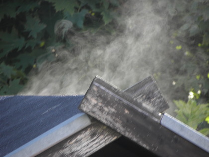 Der Wind dreht im Tagesverlauf auf Südost. Wärmere Luft gelangt nach Deutschland, besonders der Westen profitiert davon. Bis zu 20 Grad C sind möglich. Fast überall scheint die Sonne. Das Bild zeigt ein 'rauchendes Dach'. Die Sonne heizt den Tau am Morgen weg. Ein schönes Wochenende wünscht Donnerwetter.de