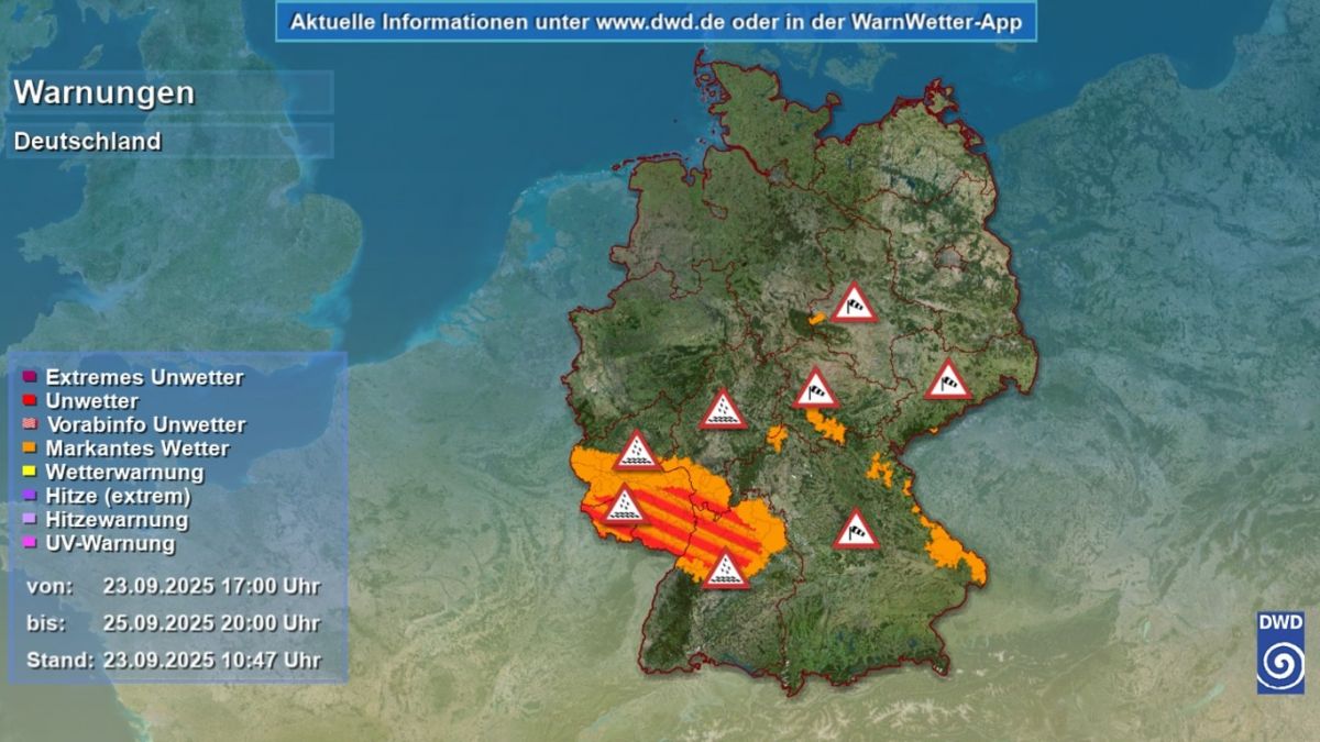 Unwetterwarnlage 23.09.2025 (Stand: 10:47 Uhr)