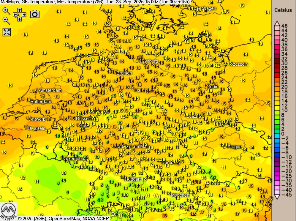 Der Norden zählt am Dienstag dagegen zu den Wettergewinnern - vor allem im Küstenumfeld scheint die Sonne häufig von einem wolkenlosen Himmel, dazu gibt es angenehme Herbstwerte um 16 Grad.