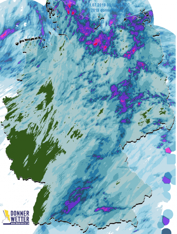 Radarbild von Mittwoch, 31.07.2019 um 23.20 Uhr