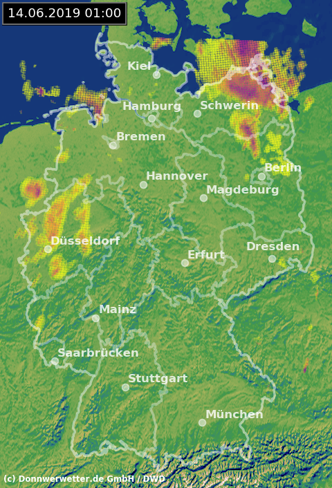 Radarbild von Freitag, 14.06.2019 um 01.00 Uhr