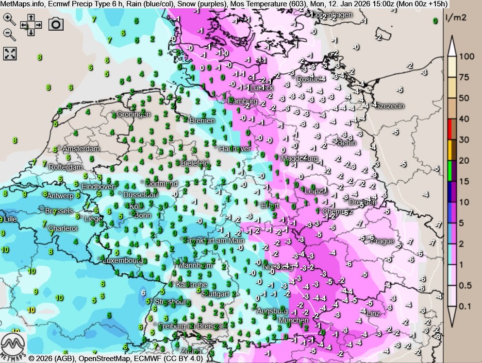 Am Vormittag und Nachmittag breitet sich gefrierender Regen zunächst aber noch in Baden-Württemberg, Bayern, Sachsen-Anhalt und Thüringen aus. Stellenweise betroffen sind zudem Schleswig-Holstein, Hamburg und Mecklenburg-Vorpommern.