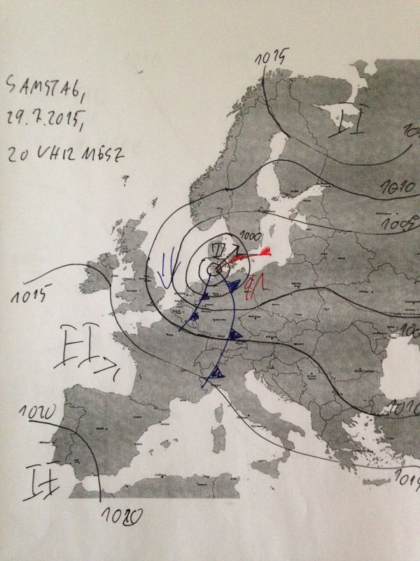 Hier ist die Wetterkarte von 8 Uhr heute Morgen: