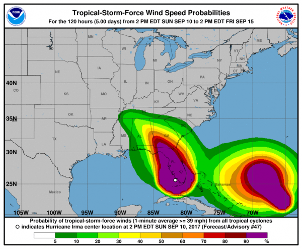 Noch 24 Stunden muss Florida bangen, dann wird sich die Situation deutlich entspannen. Am Dienstag zieht der Sturm nach Geogia und am Mittwoch wird es sich im mittleren Westen zögern auflösen. Hier die Windprognose für die USA:
