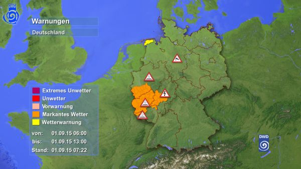 Regengebiete bringen dem Westen Deutschlands aktuell teils kräftigen Regen und Gewitter. Besonders NRW, RP und das Saarland betroffen. Im Berufsverkehr muss daher bis 10 Uhr mit teils massiven Beeinträchtigungen gerechnet werden.