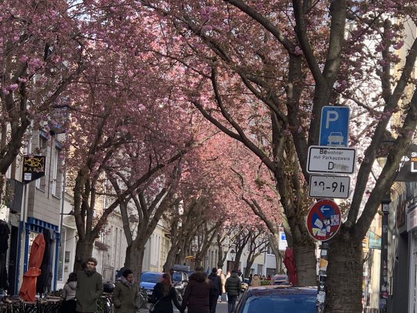 In der Bonner Nordstadt, einem der Kirschblüten-Hotspots in Deutschland, zeigen sich nun die ersten Kirschblüten in Vollblüte; und auch in vielen anderen Regionen im Land wird dieser Woche eine rosane!