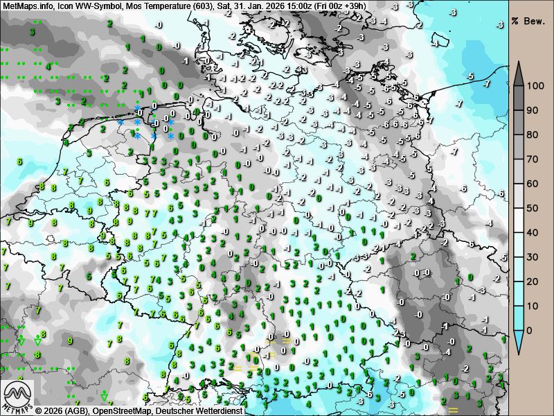 Während im Norden und Osten Deutschlands heute noch vereinzelt Schnee fällt, setzt sich im Westen und Südwesten bereits deutlich mildere Luft durch. Dort steigen die Temperaturen am heutigen Freitag auf über 5 Grad Celsius, morgen werden örtlich sogar nahezu 10 Grad Celsius erreicht.