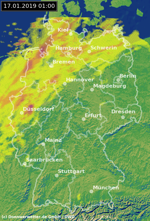 Radarbild von Donnerstag, 17.01.2019 um 01.00 Uhr