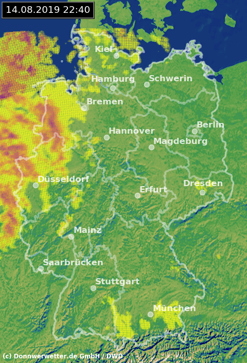 Radarbild von Mittwoch, 14.08.2019 um 22.40 Uhr