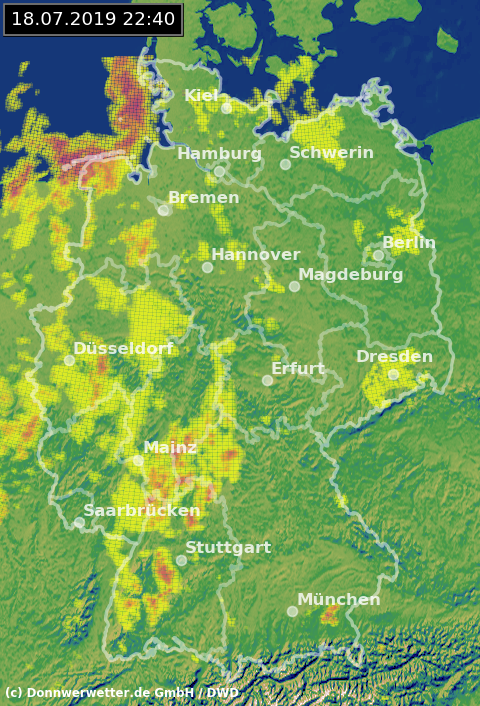 Radarbild von Donnerstag, 19.07.2019 um 22.40 Uhr