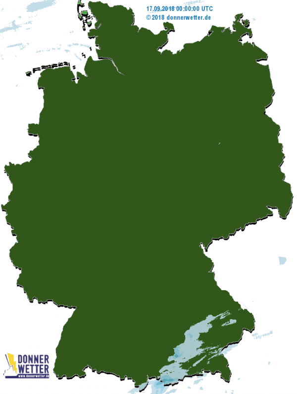 Von Mittwoch auf Donnerstag löst eine schwache Störung in einem Streifen vom Oberrhein über die Mittelgebirge bis nach Brandenburg örtliche Schauer und Gewitter aus. Die Niederschlagsmengen liegen dabei meist zwischen 1 und 10 Liter pro Quadratmeter.